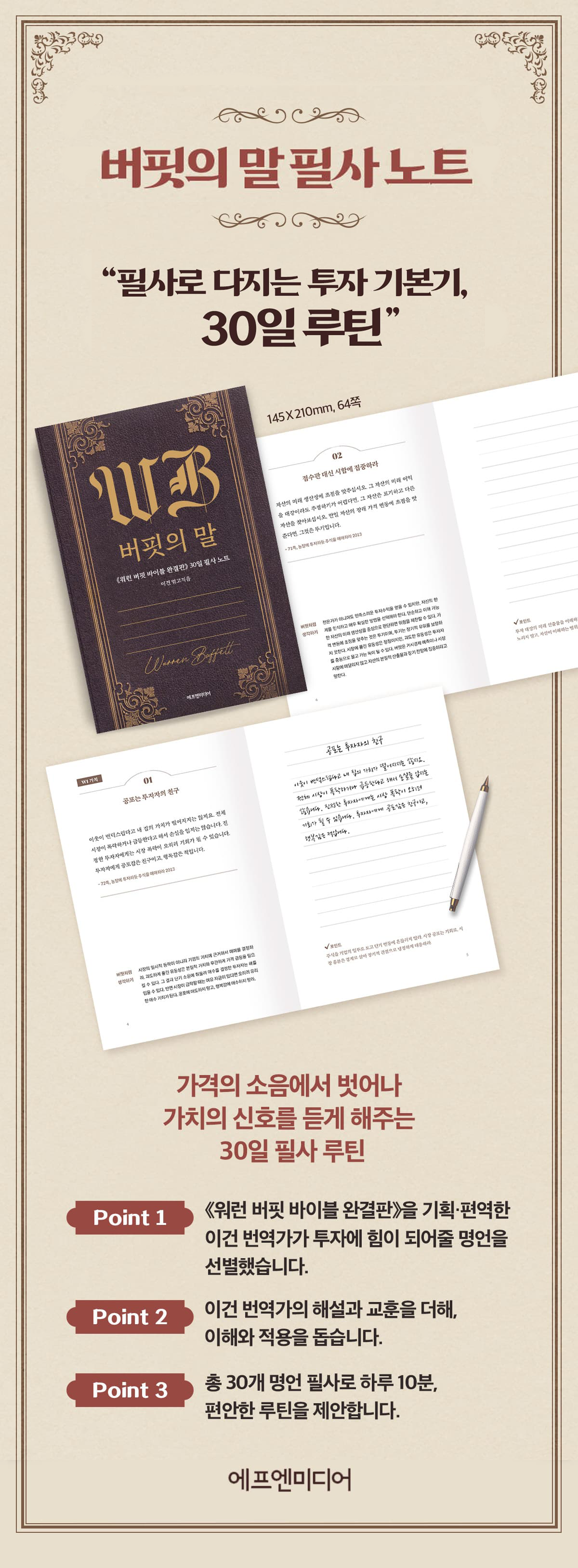 ※ 택배 발송 실비에 해당하는 포인트(4,000P)로 ‘버핏의 말’ 필사 노트 3권을 교환할 수 있습니다.